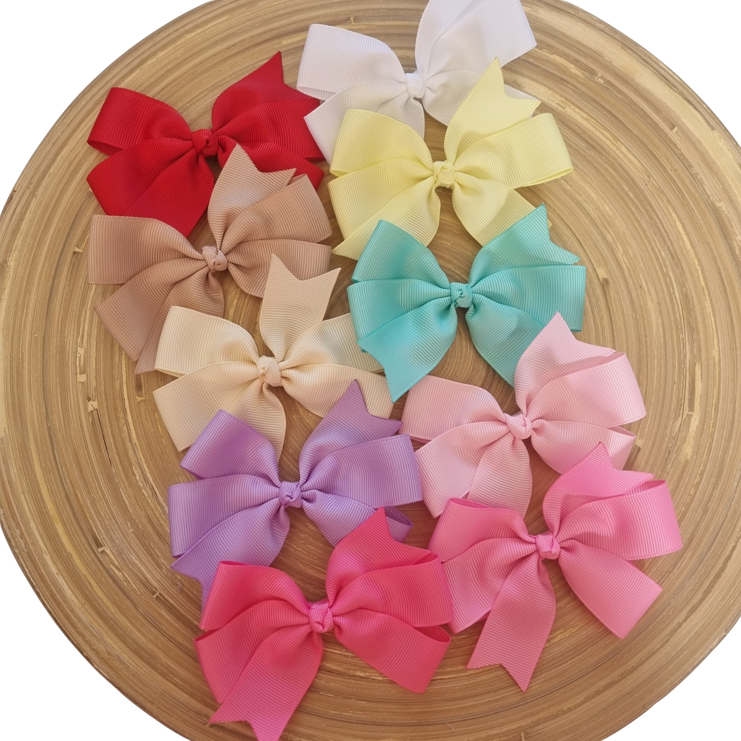 Handmade 12cm bows using grosgrain ribbon.