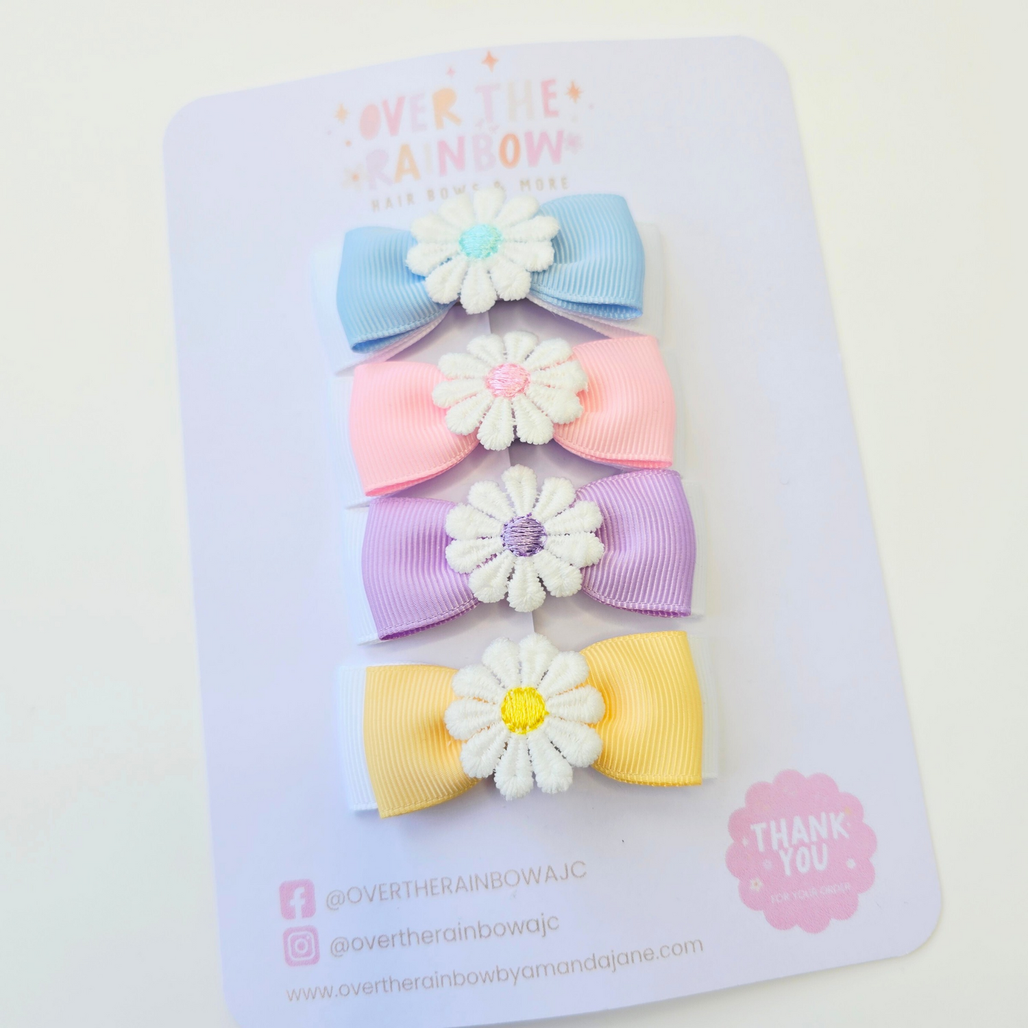 Handmade 7cm bows using grosgrain ribbon.